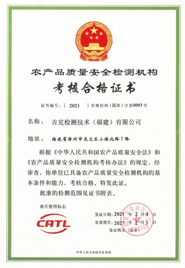 吉克檢測(cè)技術(shù)(福建)有限公司,位于福建省漳州市龍文區(qū)小港北路1號(hào),于2019年8月注冊(cè)成立,是一家獨(dú)立的第三方檢測(cè)公司。公司已經(jīng)通過(guò)檢驗(yàn)檢測(cè)機(jī)構(gòu)計(jì)量認(rèn)證(CMA)、農(nóng)產(chǎn)品質(zhì)量安全檢測(cè)機(jī)構(gòu)資質(zhì)認(rèn)證(CATL),獲得中國(guó)合格評(píng)定國(guó)家認(rèn)可委員會(huì)(CNAS)認(rèn)可。公司本著“嚴(yán)謹(jǐn)、規(guī)范、高效、協(xié)作”的原則和對(duì)客戶及社會(huì)高度負(fù)責(zé)的精神,充分利用本公司優(yōu)質(zhì)的檢測(cè)環(huán)境、先進(jìn)的檢測(cè)設(shè)備和專業(yè)的技術(shù)人員,第一時(shí)間為客戶提供科學(xué)、公正、準(zhǔn)確的檢驗(yàn)檢測(cè)報(bào)告。 公司實(shí)驗(yàn)室面積1100多平方米,儀器設(shè)備兩百多臺(tái)(套),固定資產(chǎn)一千多萬(wàn)元,在職員工31人,技術(shù)人員中的中高級(jí)職稱及同等能力人數(shù)占60%以上。我們的服...